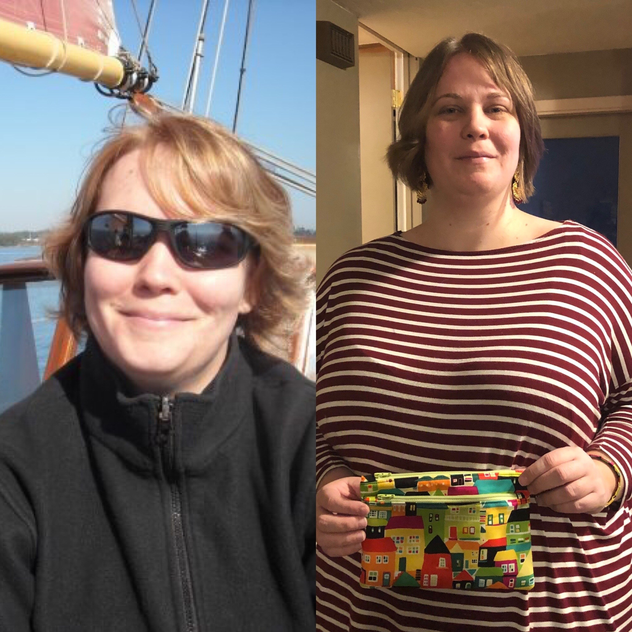 There’s also been that 10 year aging thing that’s been going around Facebook. I went ahead and did it. The picture on the left is me on our honeymoon is 2009 and it’s one of my favorite pictures. I really loved being on that sailboat. The picture on the right is 2019 and is me holding one of the pouches I’ve made recently. I’m keeping that pouch because I love the house fabric I used.