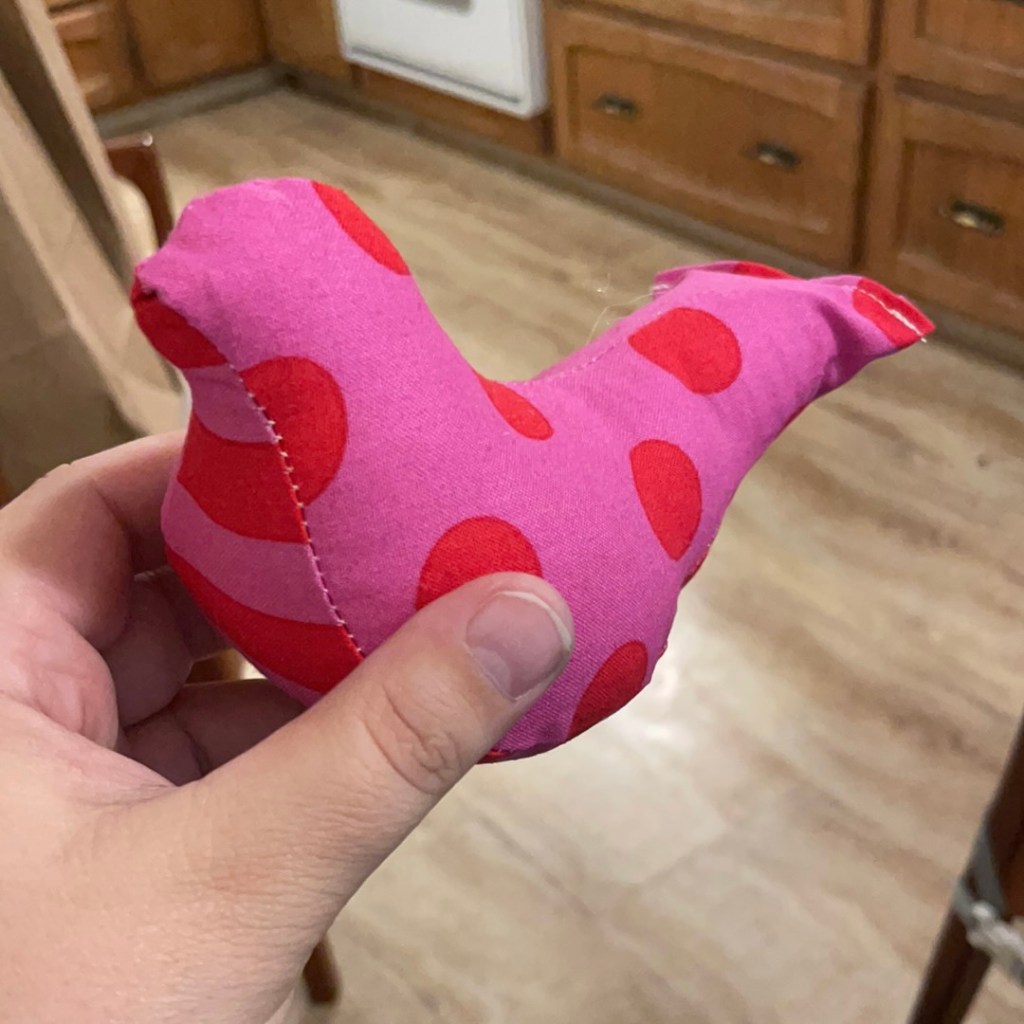 The Plump Partridge is a free pattern from the Modest Maven blog. I think they’re the cutest little things and they were quick to put together. About 20 minutes from cutting out to sewing to stuffing the birds with fiberfil. I only took a picture of one of the birds before I packed them up in the box and took them to the post office.