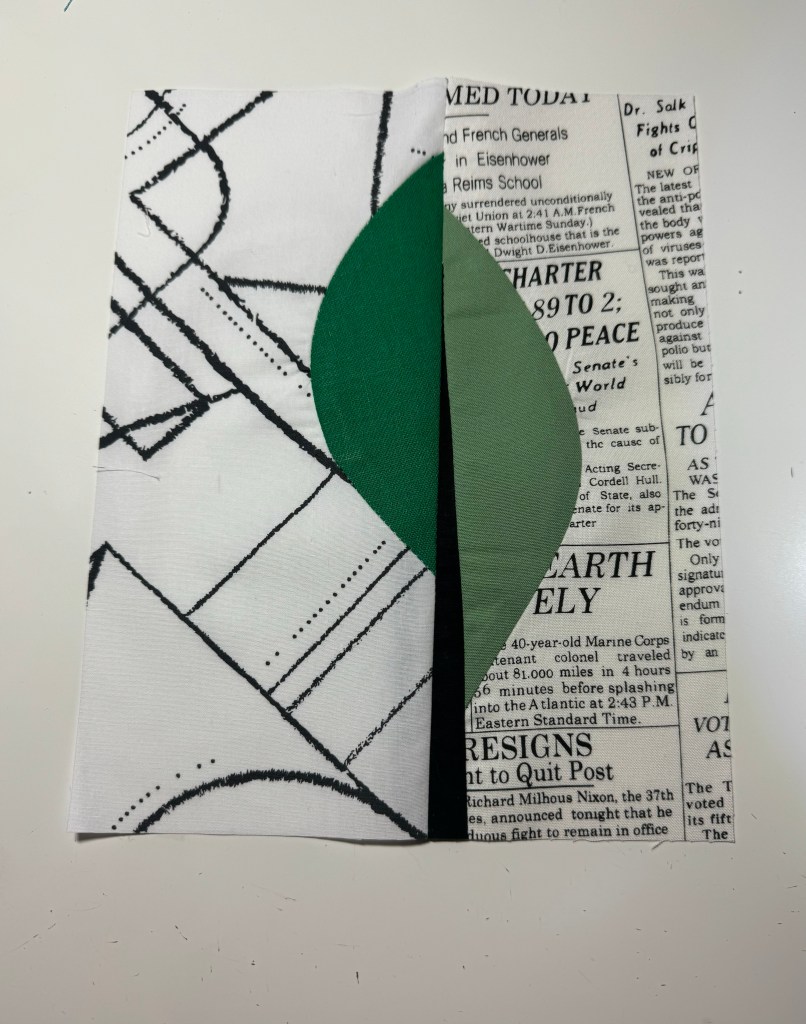 I found that when I cut four blocks in a stack, they all had the same shapes when sewn together. I didn’t like that they all looked the same. I decided to freehand rotary cut each leaf shape, which takes more time but I’m pleased with the outcome. I used low volume background fabrics and a variety of solids and Essex linen fabrics and I think the leaves turned out well.