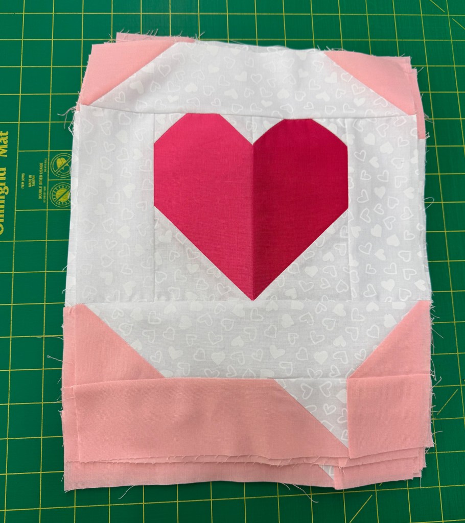 Next week, I think it’s back to improv after I finish up these couple of projects. I’m hoping to deliver my I Heart You quilt to the longarm quilter this Friday, when I see her at a quilt show. The longarm quilter is my mom. I have a decision to make on backing so we’ll see what I choose. The first option is a solid medium pink that is a different shade from the other pinks in the quilt or a Ruby Star Society strawberry print on a teal background. I’ll share the finished quilt when I get it back.